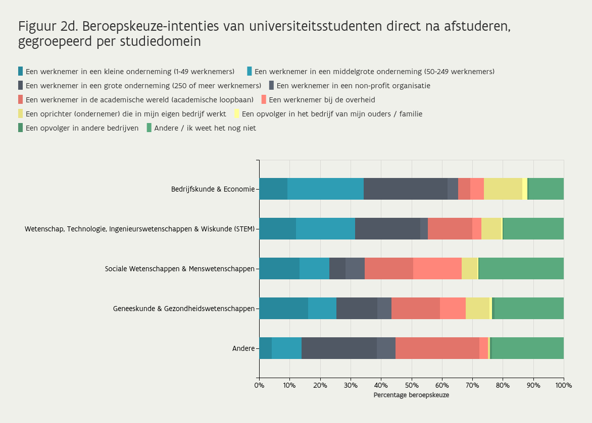 Figuur 2d. Beroepskeuze-intenties van universiteitsstudenten direct na afstuderen, gegroepeerd per studiedomein